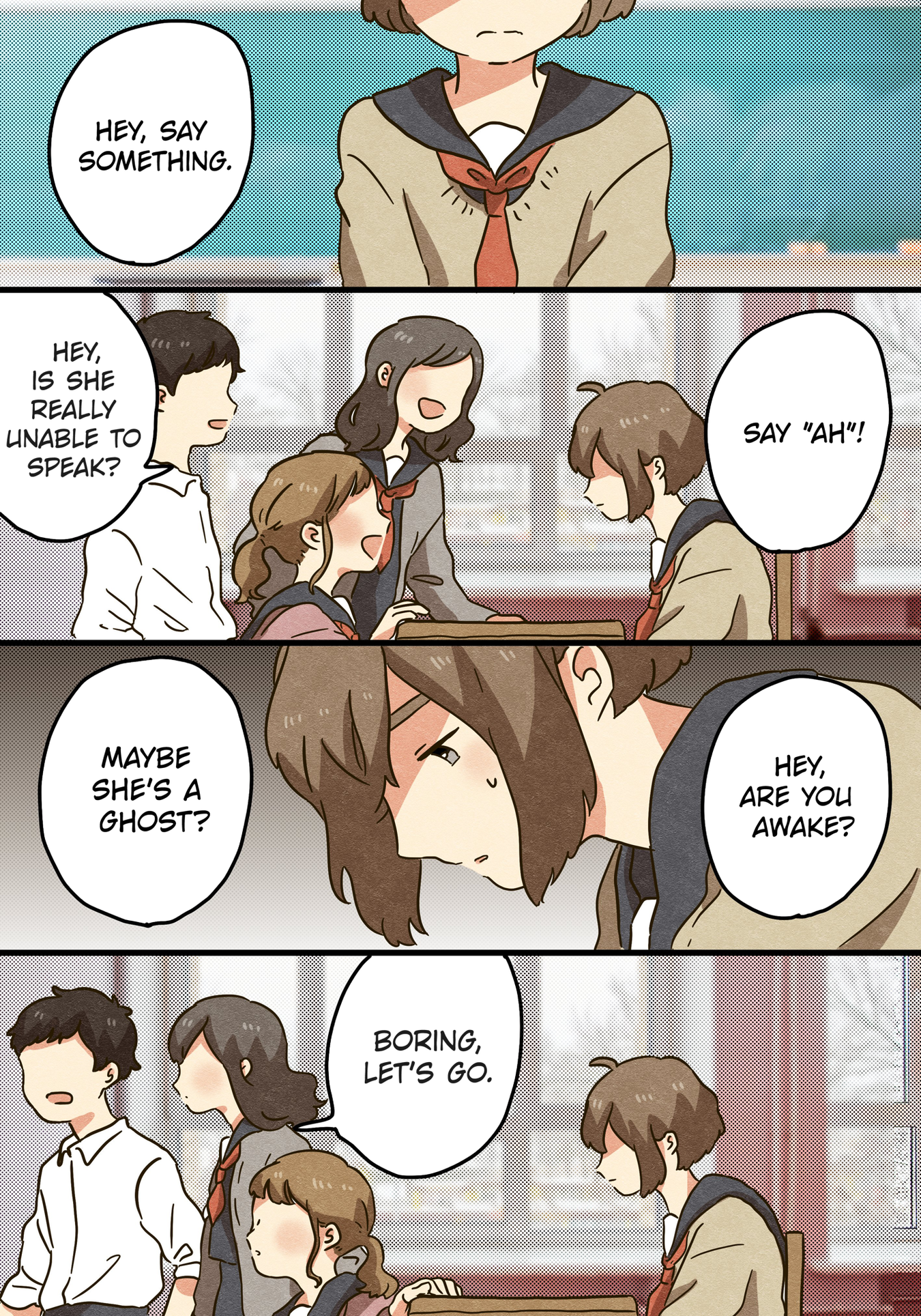 Suradau japonišką komiksą, kuriame vaizdingai ir aiškiai pasakojama apie mergaitę, kurią ištiko selektyvaus mutizmo sindromas. Žemiau yra šio komeikso pradžia, paspaudę nuorodą rasite visą istoriją.