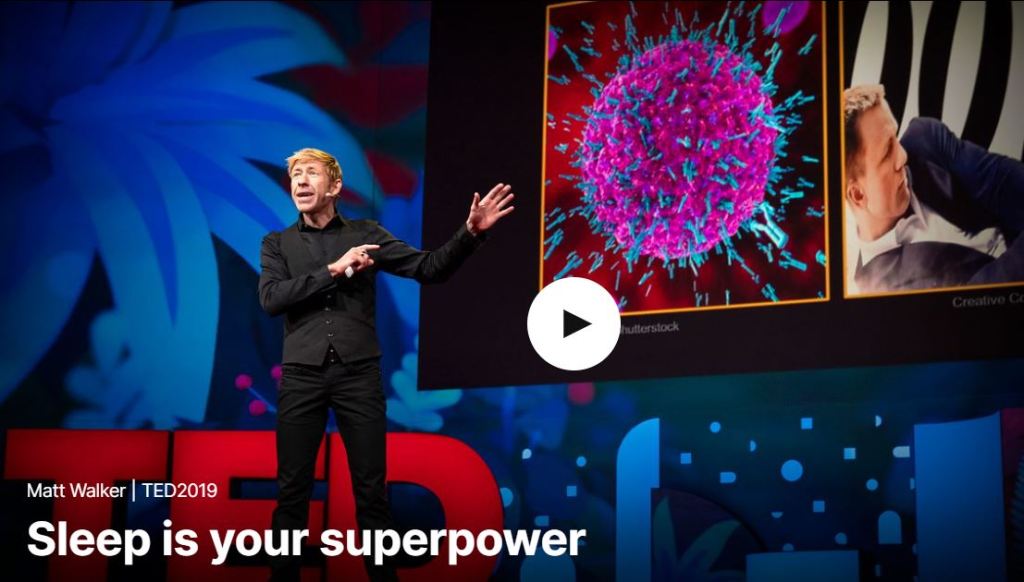 Štai Matthew Walker 2019m. TED kalba “Sleep is your superpower“. Labai super, kad savo įžvalgas jis, neurofiziologijos mokslų daktaras, pateikia su humoro doze ir labai paprastai, netgi jaukiai. Na, dar cool yra tai, kad galima užsidėti titrus lietuvių kalba!